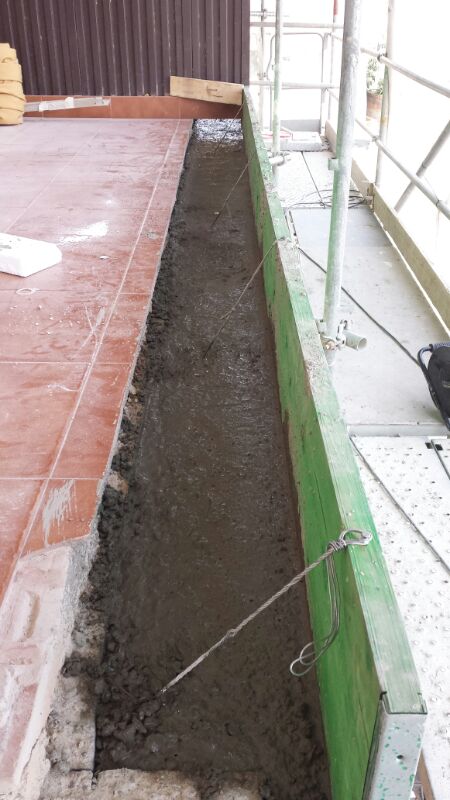 El peto de la cubierta de los áticos se encontraba en muy mal estado, por lo que se propuso la realización de un refuerzo de dichos petos para estabilizarlos y garantizar el correcto anclaje de las barandillas.