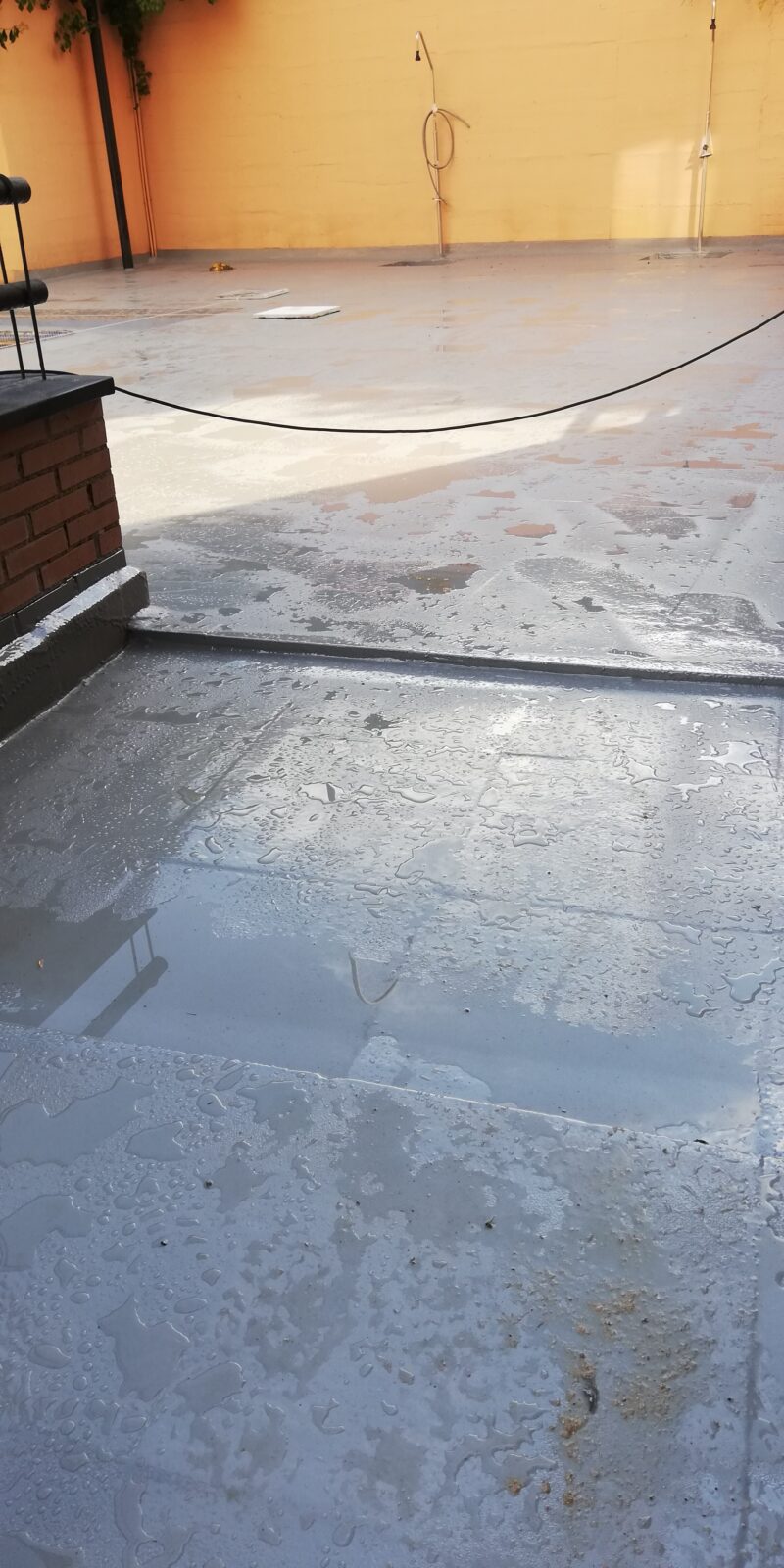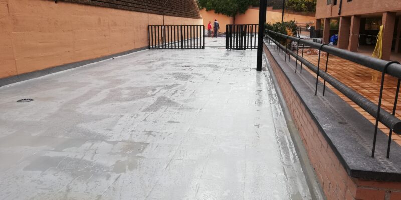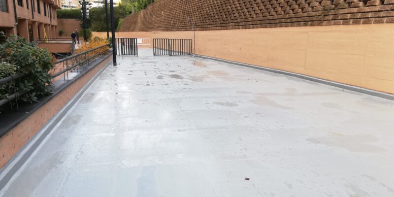Posterior aplicación de poliurea pura PU100 un sistema impermeable y elástico de última generación, formando una membrana continua y sin juntas, transitable y con alta resistencia al desgaste y punzonamiento. Color a elegir (rojo, gris, negro).