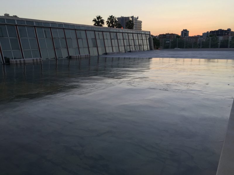 Aplicación de sistema impermeable y elástico de última generación, formando una membrana continua y sin juntas, transitable y con alta resistencia al desgaste y punzonamiento. La aplicación se convierte impermeable y permisible al paso y tacto a los 3-5 segundos.