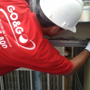 Se demolió el goterón inferior de las losas de balcones. Posteriormente se reconstruyó mediante la colocación de armadura longitudinal de acero inoxidable y varillas para conectar el hormigón viejo (losa) con el nuevo (goterón), aplicando a la vez un producto adecuado como puente de unión entre estos.