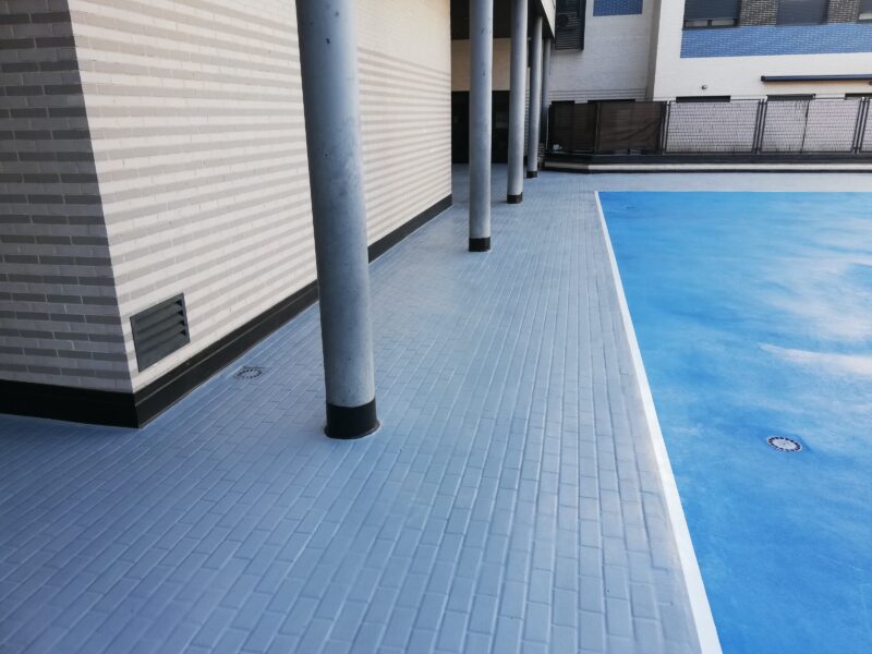 Impermeabilización con poliurea trafico peatonal patio comunitario en Valdemoro